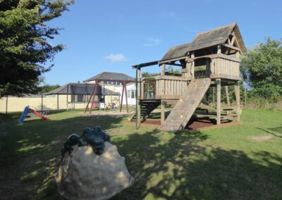 The Play Park is fully enclosed and has two large trampolines with safety nets, climbing frame, swings and other play equipment.